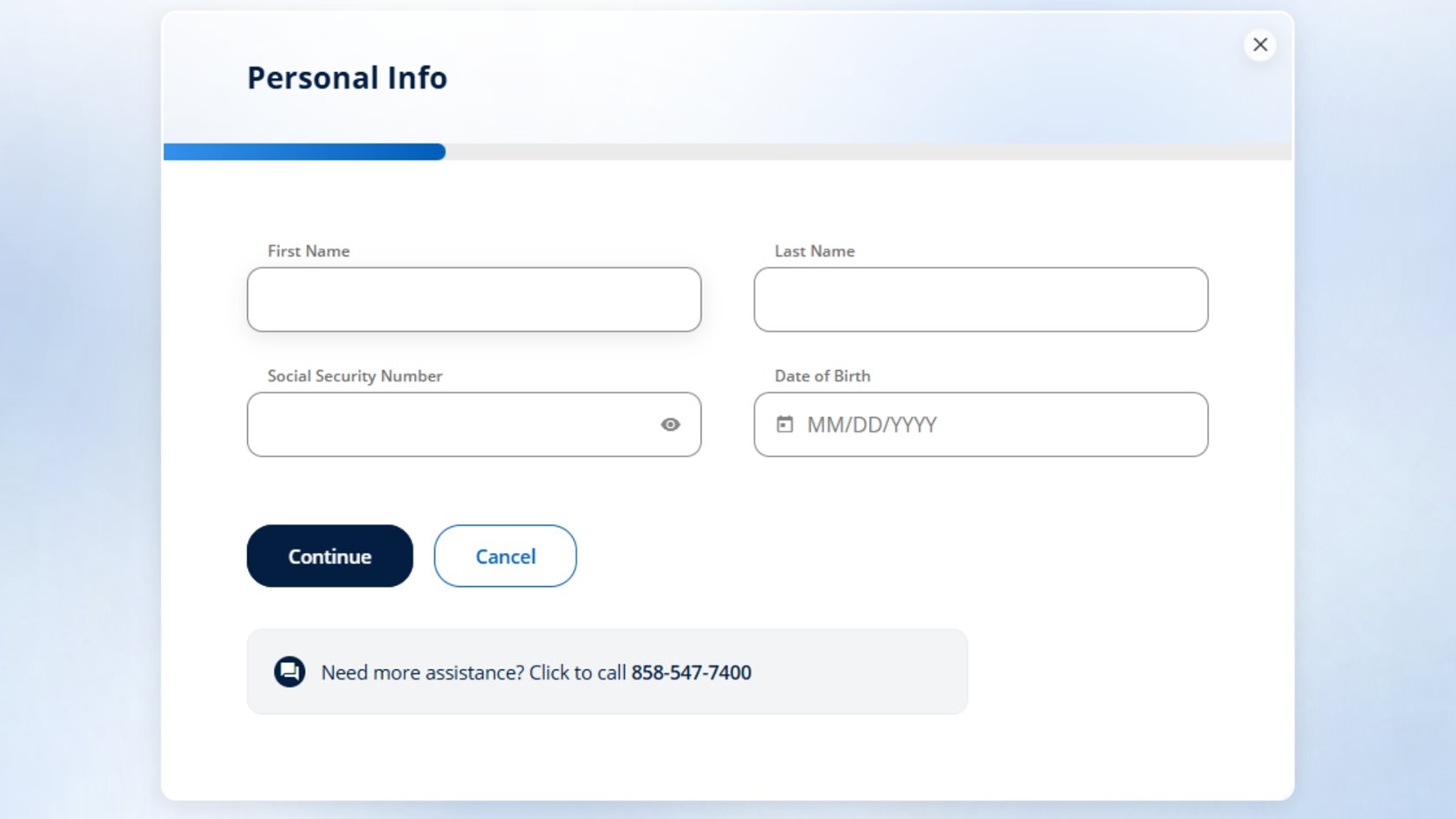 Enter this information and select Continue. Choose how you’d like to receive a one-time confirmation code to authenticate — via text message or voice message. Confirm your contact source, then enter the code you receive and tap Continue to verify.